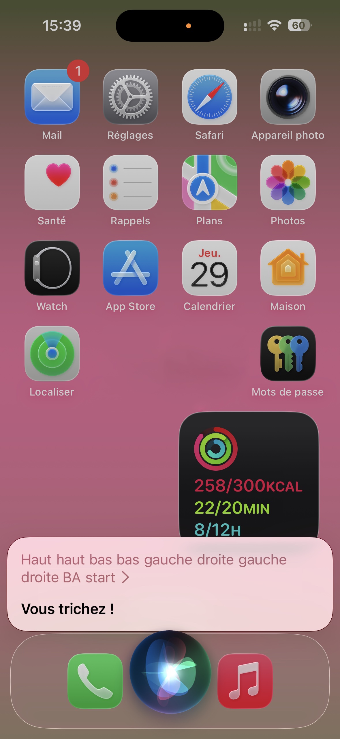 J’ai essayé avec Siri sur l’iPhone, avec le Mac (en activant Ecrire pour Siri) et avec un HomePod. Siri répond aléatoirement trois choses (en français) : « Geek », « J’ai la tête qui tourne… » ou « Vous trichez ! ».
