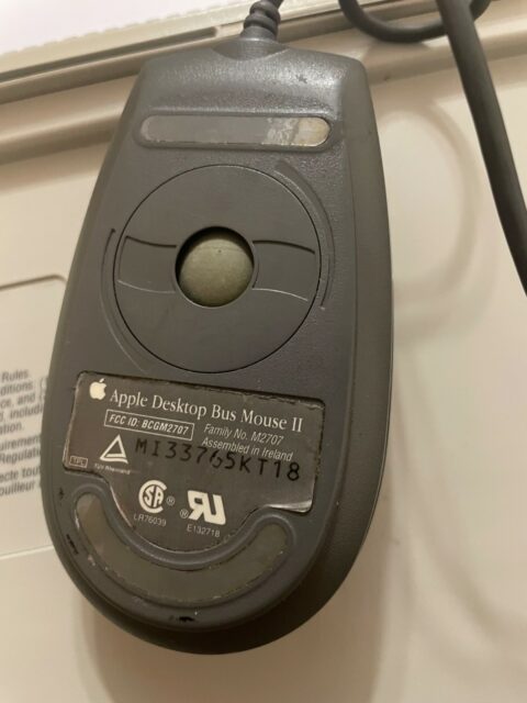 Ce n’est pas un prototype, mais une souris rare que j’ai vu sur eBay : la M2707. C’est la version pour PowerBook de l’Apple Desktop Bus Mouse II.