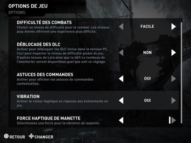 Et avec une manette de Xbox Series, on est dans le même cas : des vibrations franches, des boutons bien assignés et même une manette dans les options qui est celle que vous tenez en main.