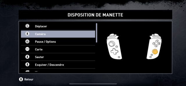On va en reparler, mais pour rappel les manettes de Nintendo Switch 2 (Joy-Con compris) ne fonctionnent pas sur les appareils Apple. Pour les manettes de la Nintendo Switch (la première), ça fonctionne. Avec la manette Pro Controller, tout fonctionne, vibrations comprises (avec un résultat assez doux). Le jeux s’adapte bien aux boutons X et Y inversés (comme A et B) par rapport aux manettes de Xbox. La seule chose, c’est que l’image dans les options montre deux Joy-Con sur un support.
