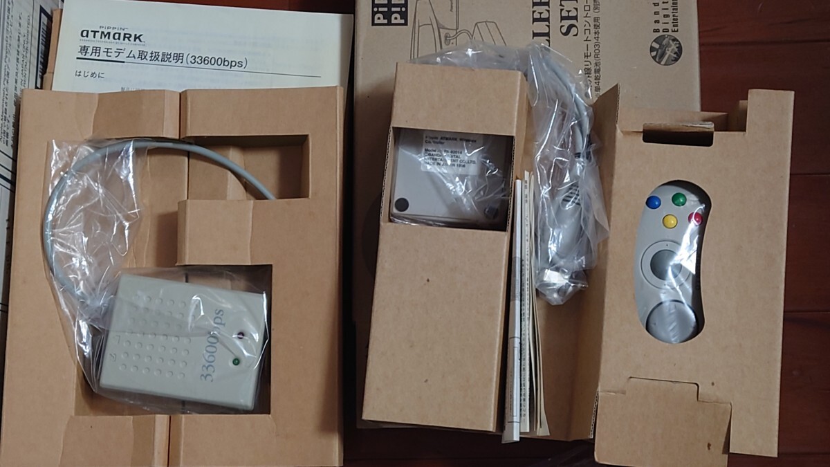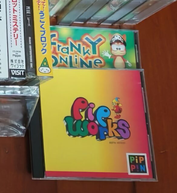 Il y avait une console, une extension de mémoire de 2 Mo, le modem 33 600 bauds et une manette sans fil. Mais surtout, beaucoup de jeux. On en voit trente-cinq sur la photos et le vendeur indique qu’il en a deux de plus. On voit notamment la version bêta de l’Internet Kit, celle de Pierre et le loup, Pip Works et celle de Franky Online. Il y a aussi Pip Music, plutôt rare.