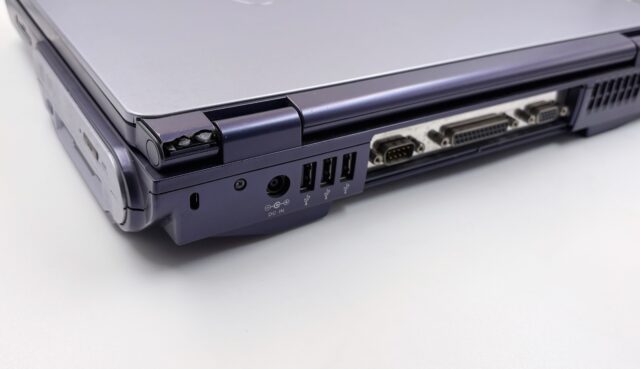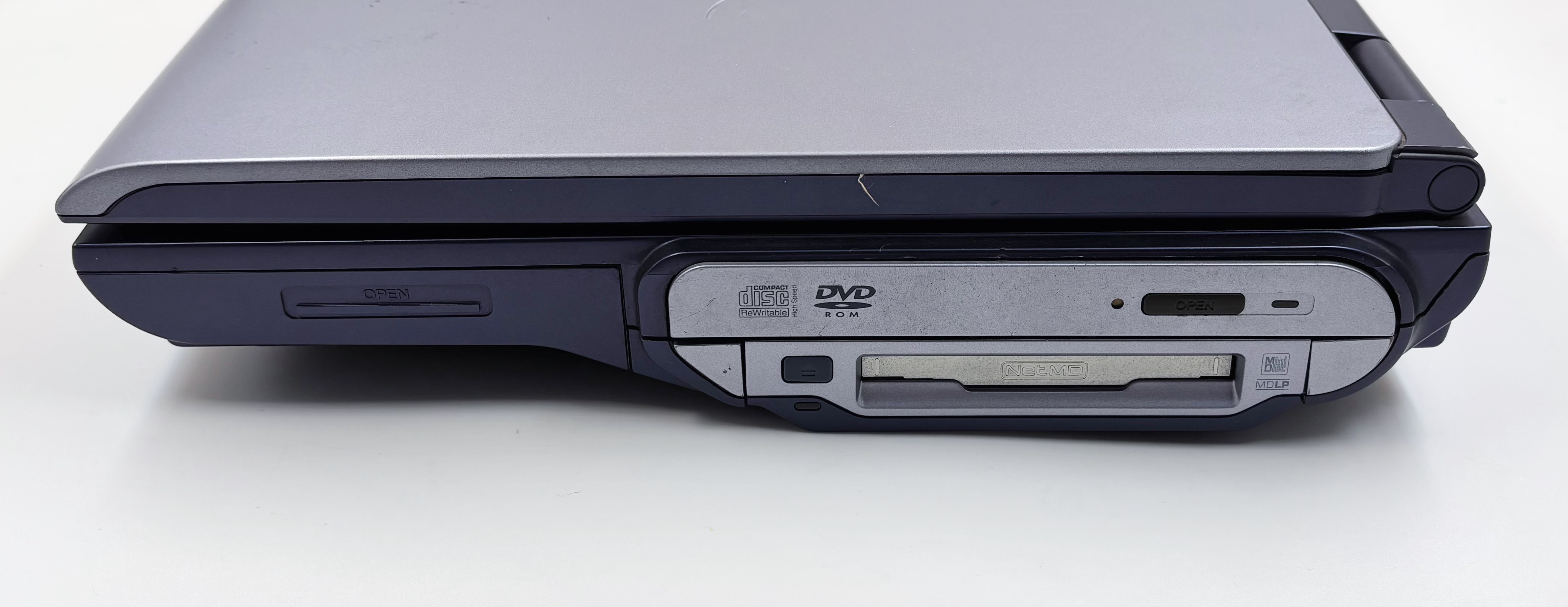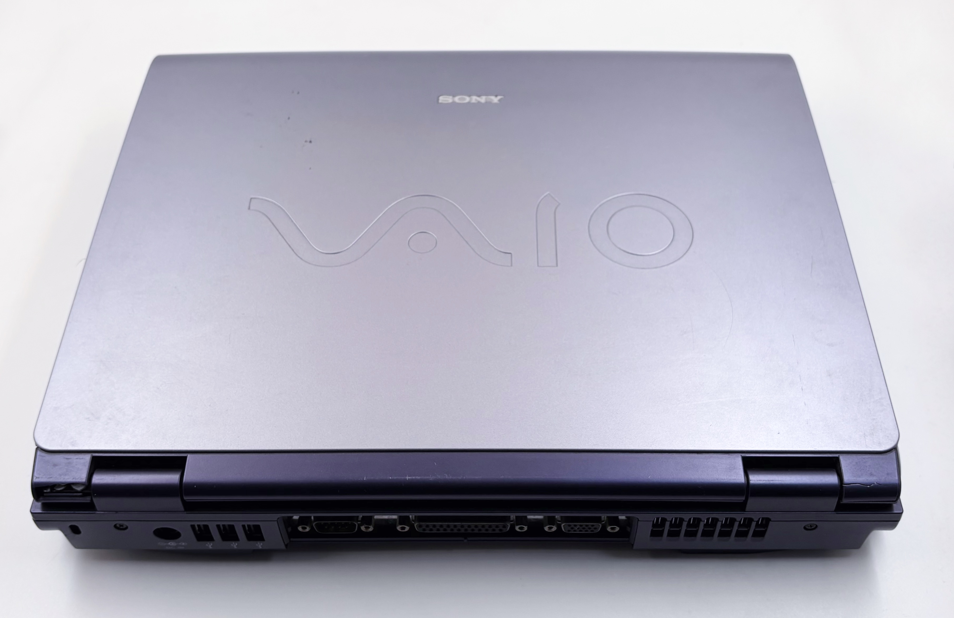 C’est un PC de 2002 et ça se voit. On a un Celeron à 1,7 GHz (basé sur l’architecture Northwood des Pentium 4), 256 Mo de DDR-2100, une carte graphique ATI Radeon 7500 mobile (version Sony). Le vendeur a aussi visiblement sorti la carte Wi-Fi (s’il en avait une). Comme c’est du Sony, il y a une molette Jog Dial (un truc qu’on voyait pas mal chez Sony à l’époque) et un lecteur de Memory Stick. La connectique est pas mal avec du parallèle, du série, de l’USB (1.1), du PC Card, du FireWire 400 (4 broches), etc. Il y a une présentation d’une version fonctionnelle dans cette vidéo. L’écran de 15 pouces affiche normalement du 1 600 x 1 200 (en 4:3) mais c’est difficile de vérifier la qualité de la dalle.