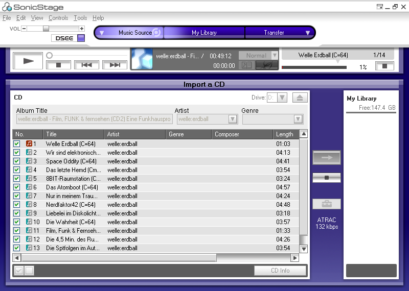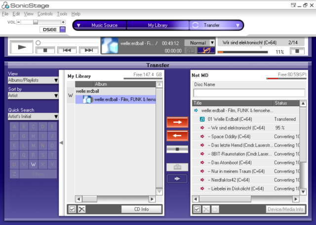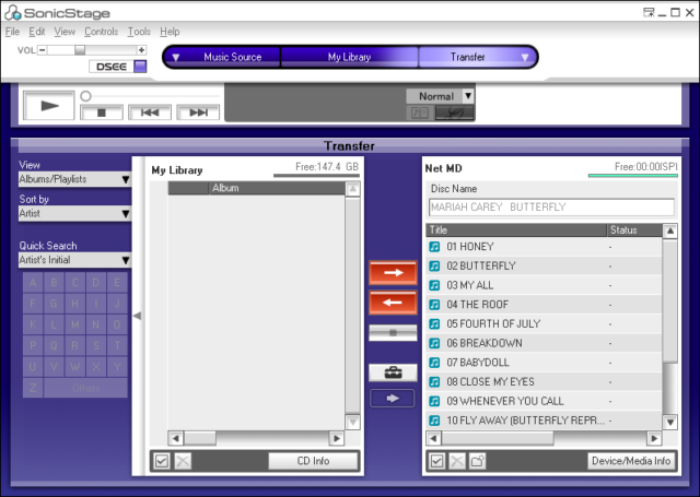 Pour le reste, ça fonctionne : j’ai pu lire un MiniDisc préenregistré et transférer un CD audio sur un MiniDisc. Sonic Stage a même la bonne idée de lire les données CD-Text, ce qui est une bonne nouvelle.