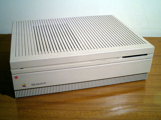 Le second Macintosh capable d’accepter deux lecteurs internes et le Macintosh SE. Comme le Macintosh LC, on avait essentiellement le choix entre deux lecteurs de disquettes ou un lecteur de disquettes et un disque dur interne. Enfin, dans les machines de bureau, il y a quelques Macintosh II. Le Macintosh II original, le IIx et le IIfx ont un emplacement pour un second lecteur interne, avec aussi une pièce à enlever pour accéder au lecteur.