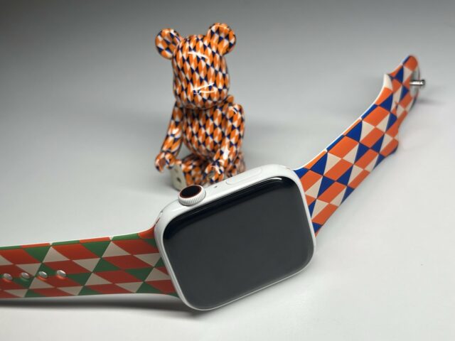 Les Bearbrick, ce sont des ours assez connus, souvent décorés par des artistes. Barry McGee, c’est artiste qui a justement proposé un Bearbrick. Et il était livré avec un bracelet d’Apple Watch, un modèle Sport de 42 mm de l’époque (vers 2018). Et selon la personne qui vend un bracelet (et qui argumente bien sur les forums de MacRumors), c’est en réalité un bracelet Apple sans que ce soit officiel.