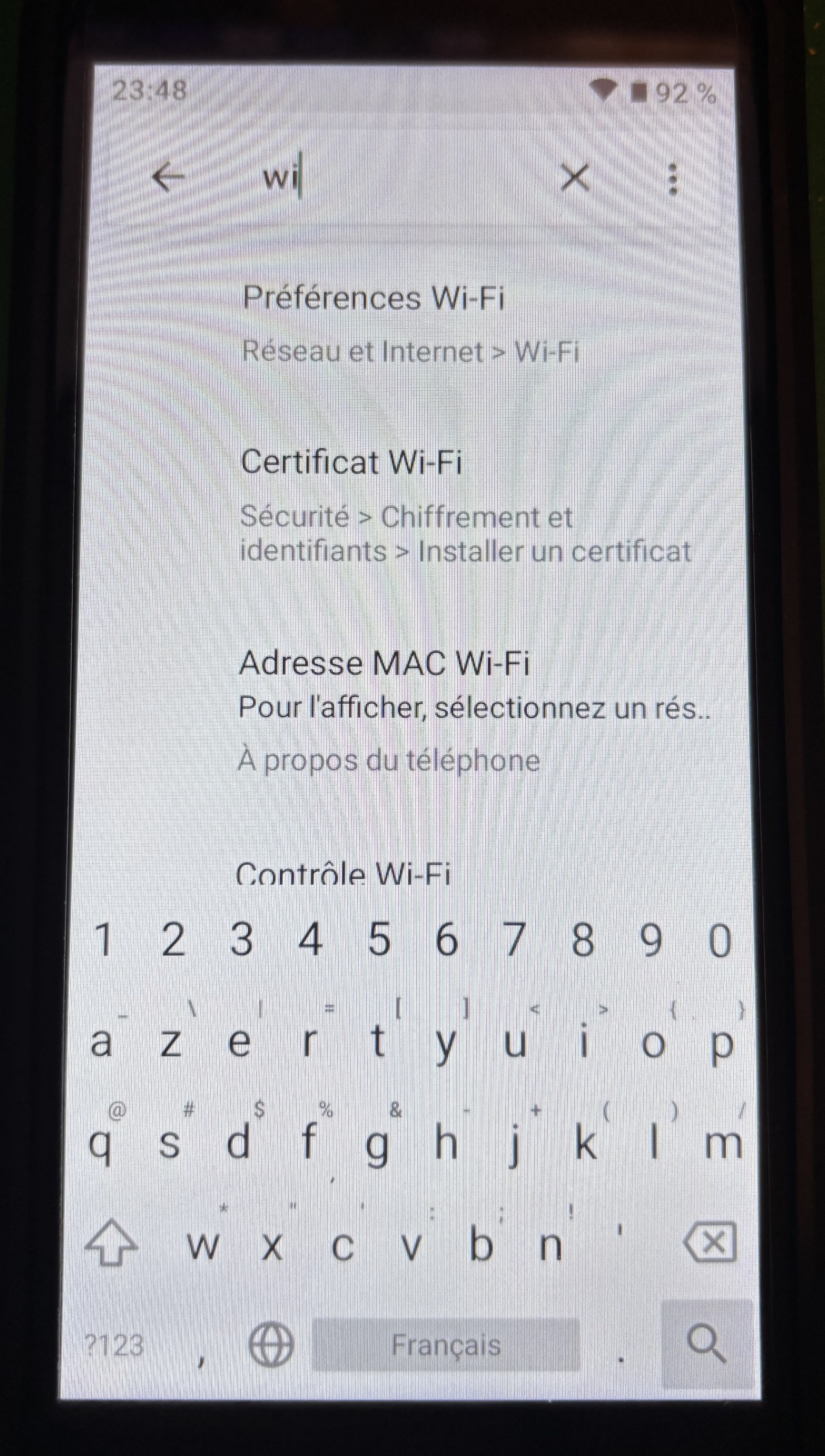Une fois qu’on est là, on peut faire plein de choses, comme chercher les réglages du Wi-Fi pour l’activer, par exemple. Ce sont des choses que j’avais déjà expliquées dans le premier sujet.