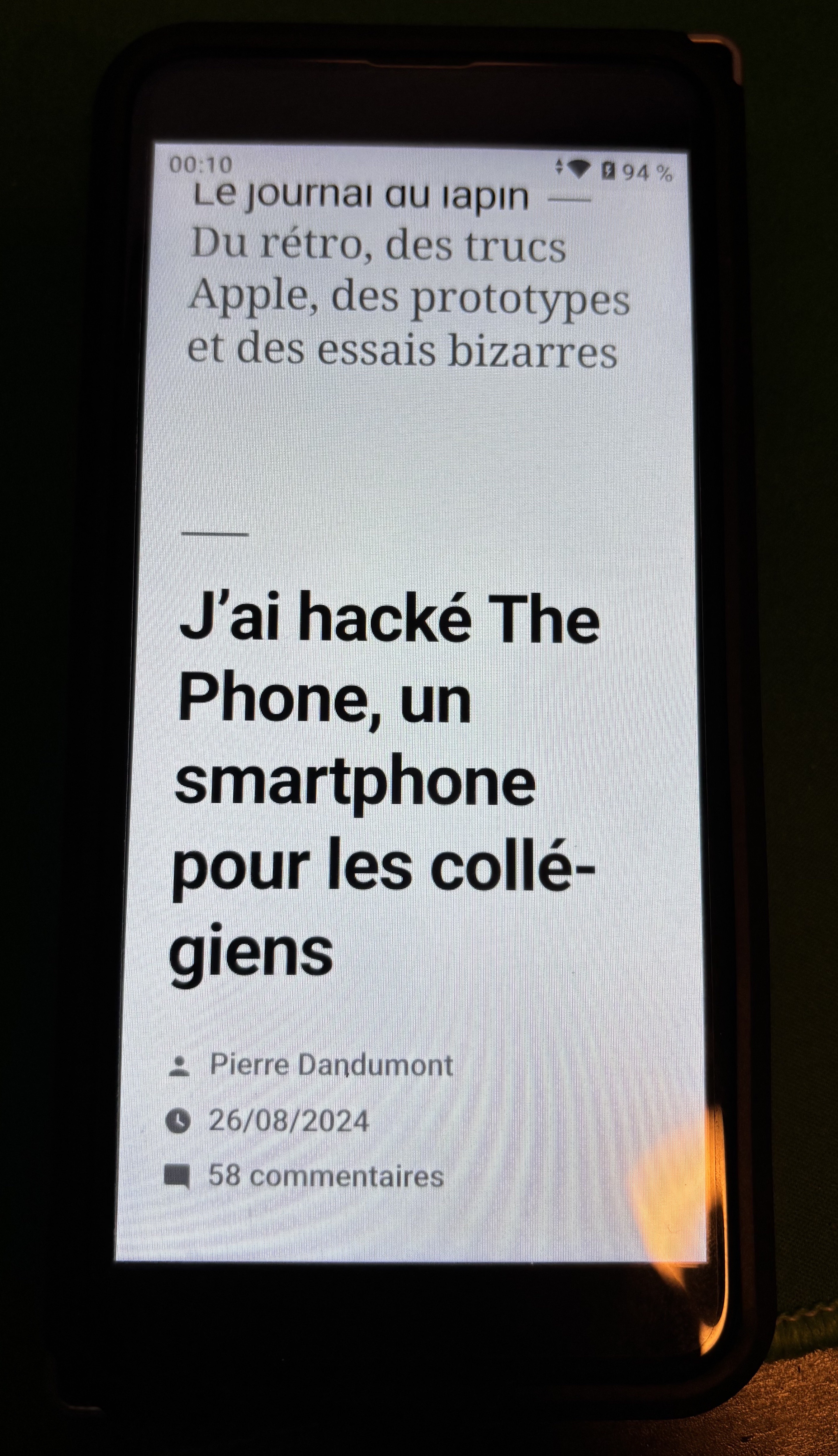 En 2024, je vous parlais de The Phone, un (mauvais) smartphone pour les collégiens, pour les parents paranoïaques. Je ne vais pas vous refaire l’histoire, mais le concept est idiot à mon avis : c’est un smartphone d’entrée de gamme, sans appareil photo, qui ne propose que quelques fonctions, téléphoner et envoyer des SMS. L’idée est d’empêcher les adolescents d’utiliser des apps comme TikTok, WhatsApp ou un navigateur. Le problème, c’est que c’est voué à l’échec : j’avais hacké The Phone en une matinée. Ils avaient sorti une mise à jour (et m’avaient appelé, aussi) qui bloquait ma méthode… mais j’en ai trouvé une autre, encore plus simple. Et pour être clair, je ne cherche pas à hacker le smartphone : c’est juste un message d’un parent démuni qui m’a intrigué, avec un début d’explication sur la méthode découverte par son ado.