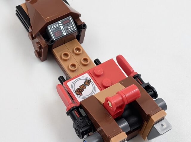 Même chose avec l’AT-ST : le marcheur est correct, sans plus, le Speeder bike un peu basique et les défauts identiques. Ce sont des sets pour les enfants, qui visent la jouabilité. Dans ce set, on a deux tags sous forme de brique (un dans le marcheur, un dans le véhicule) et une figurine compatible sur les trois.