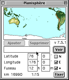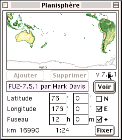 Un petit Easter Egg dans l’application Planisphère de Mac OS. Elle est normalement dans les Tableaux de bord, mais parfois aussi dans Applications (Mac OS 9) -> Compléments Apple -> Tableu de bord "Planisphère".