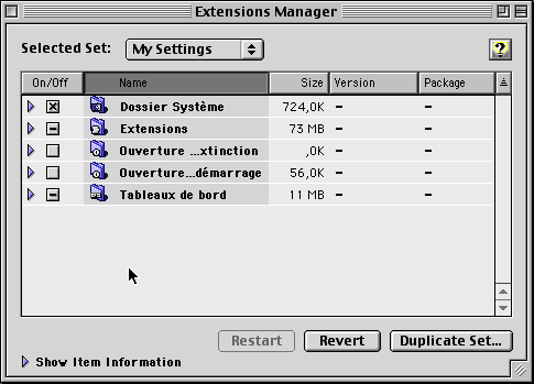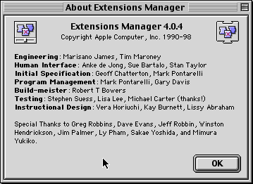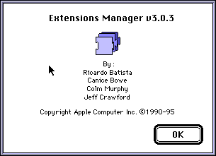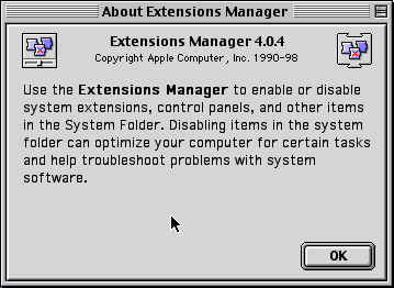 Encore un Easter Egg basique, avec le tableau de bord Extension Manager sous System 7.5.3.