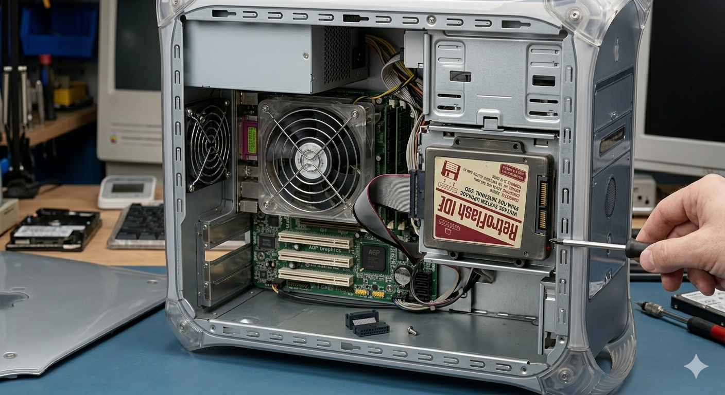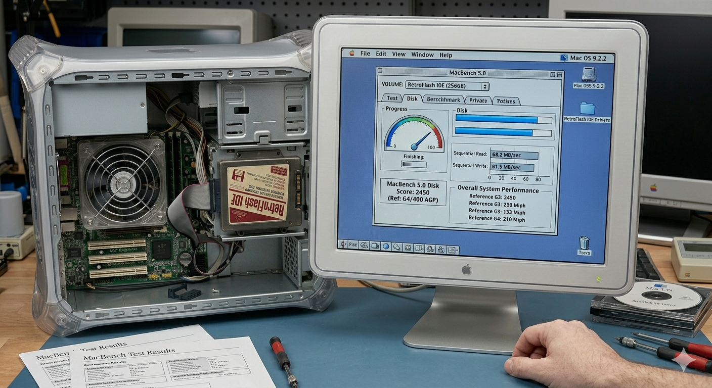 Évidemment, le vrai intérêt n’est pas la vitesse brute. Sur ce genre de machine, on ne cherche pas à transformer un Mac OS 9 poussif en fusée. Le vrai gain, c’est le confort : moins de bruit, moins de chauffe, moins de vibrations, et un support qui a plus de chances de survivre qu’un disque dur IDE de 20 ou 30 ans. Pour quelqu’un qui utilise encore de temps en temps une vieille machine, ou qui veut simplement fiabiliser un setup rétro, ça a du sens.