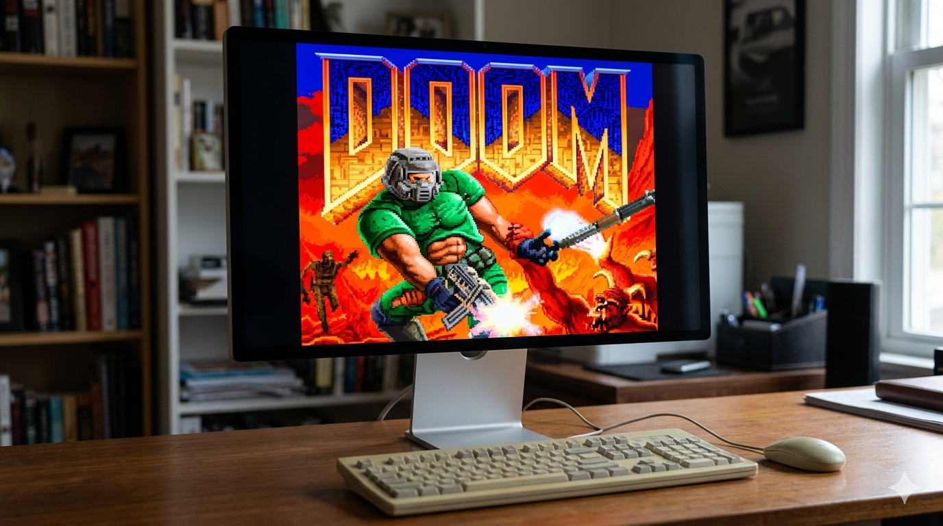 Alors pas de façon élégante, évidemment. On est sur un résultat qui tient plus du détournement technique amusant que d’une intégration propre. Le rendu n’a rien d’officiel, le contrôle est bricolé, et on est très loin d’un mode autonome utilisable au quotidien. Mais le simple fait d’avoir Doom affiché depuis l’électronique interne de l’écran lui-même, et pas juste depuis le Mac branché dessus, est déjà suffisamment ridicule pour valoir l’effort.