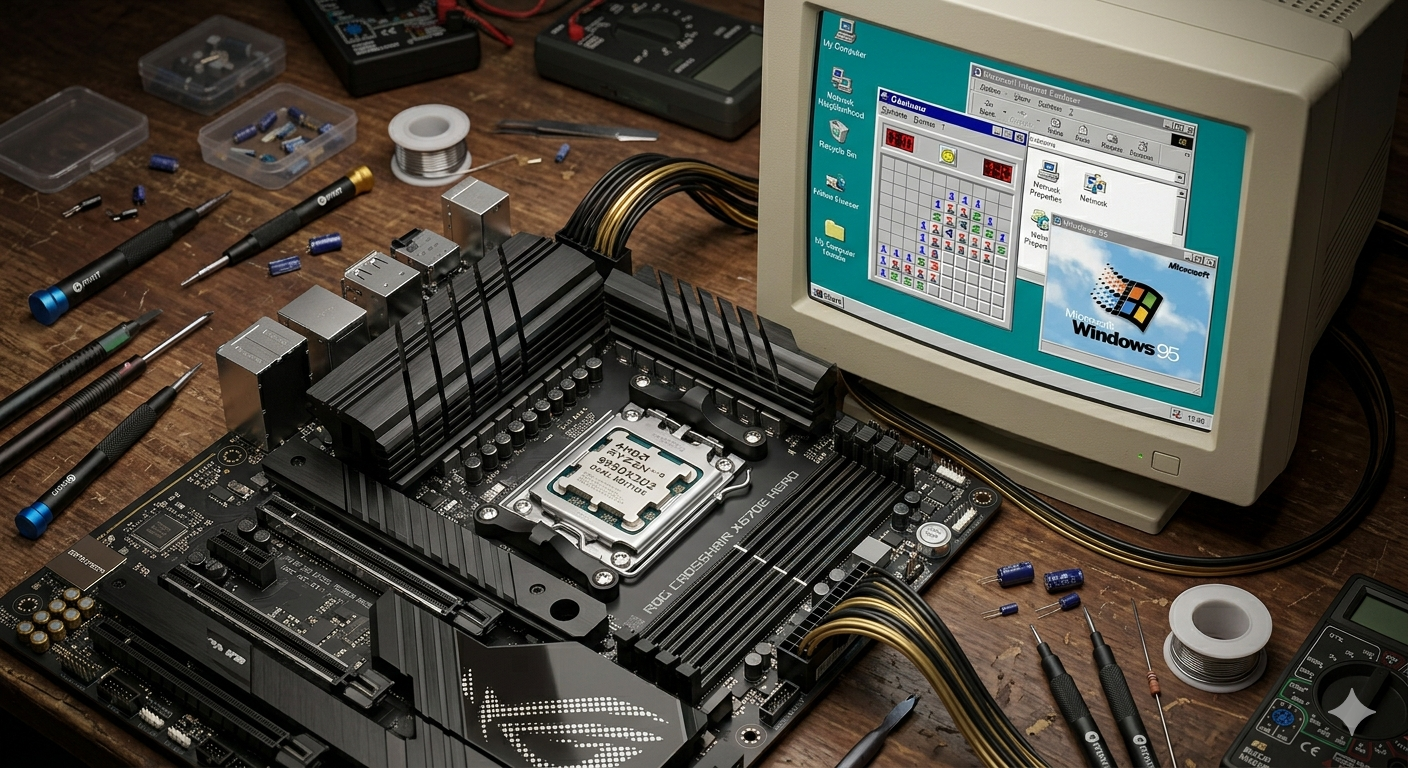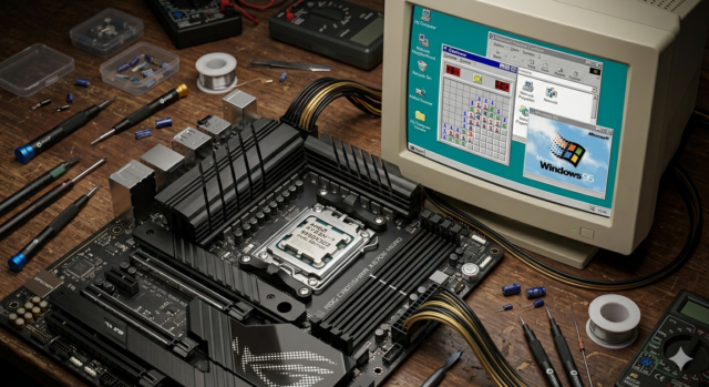 Côté fiche technique, on reste sur une base Zen 5 à 16 cœurs et 32 threads, avec une fréquence boost annoncée à 5,6 GHz. La nouveauté, c’est évidemment le cache : 192 Mo de cache L3 et 16 Mo de cache L2, soit 208 Mo au total. Pour mettre ça en perspective, le L3 seul représente plus que beaucoup de barrettes RAM d’il y a vingt ans. D’ailleurs, en fouillant un peu, je me suis amusé à vérifier : Windows 95 pèse environ 30 Mo, et Office 95 tourne autour de 50 Mo. Autrement dit, on pourrait techniquement loger les deux dans le cache L3 de cette puce, avec encore de la place pour y ranger quelques jeux de cartes en plus. Pour ce qui est du L2 avec ses 16 Mo, c’est déjà suffisant pour faire tourner Windows 95 seul comme si c’était de la RAM — ce qui, je l’admets, est complètement inutile, mais terriblement satisfaisant à imaginer.