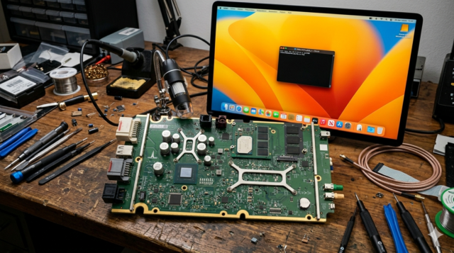 Le MCU (Media Control Unit) de la Model 3, c’est en gros un PC x86 déguisé en tableau de bord. À l’intérieur, on trouve un processeur Intel Core i3 de huitième génération, 8 Go de RAM, un SSD eMMC, et un écran tactile 15 pouces. Sur le papier, c’est tout à fait la définition d’un Hackintosh potentiel. Il m’a fallu quelques soirées pour cartographier les connecteurs, comprendre comment contourner la séquence de démarrage propriétaire de Tesla, et bricoler une alimentation 12 V correcte depuis un vieux bloc de PC. Pas insurmontable, mais pas trivial non plus.