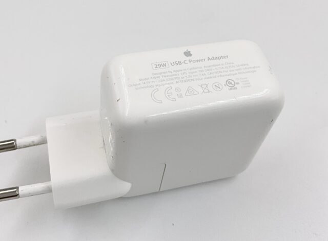 La première question à se poser est simple : pourquoi 14,5 V ? Je ne peux pas répondre catégoriquement, mais je suppose que c’est pour une compatibilité MagSafe. Si vous prenez un adaptateur secteur de MacBook Air de l’époque, en MagSafe, il travaille avec une tension de 14,5 V. Apple avait peut-être prévu un adaptateur USB-C vers MagSafe ou un MagSafe vers USB-C, je n’en sais rien. La tension est suffisamment rare pour que ce ne soit pas une coïncidence.