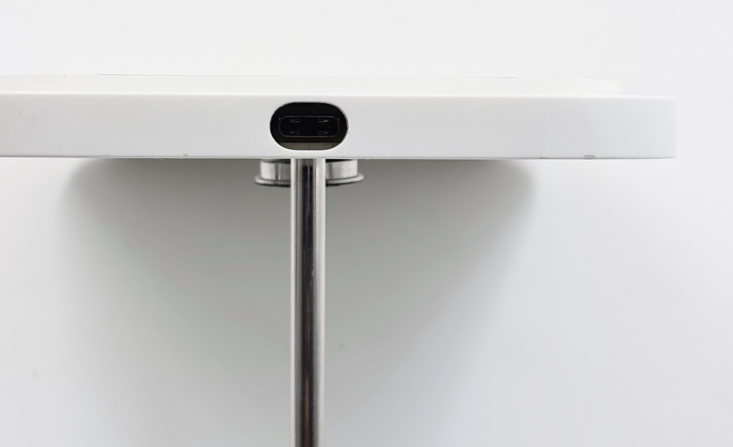 Pour l’alimentation, il faut un câble USB-C avec une prise qui n’est pas trop large : c’est assez ajusté. Ça passe bien avec un câble tressé Apple, par exemple. Une fois relié à un Mac, il communique, donc le firmware peut probablement être mis à jour.