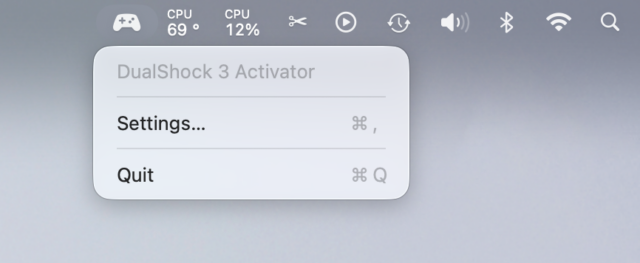 Il faut une manette de PlayStation 3 (DualShock 3 ou SIXAXIS) et un câble Mini USB. On trouve des versions avec de l’USB-C d’un côté si vous en avez besoin. Le programme active la manette (la DualShock 3 va vibrer, pas l’autre…) et ça fonctionne. Je ne vais pas mettre le code en ligne pour plusieurs raisons. La première, c’est que le code de base n’est pas de moi, donc je ne peux pas réellement le partager. La seconde, c’est que je n’ai pas de compte développeur, donc l’app n’est pas signée. Et la troisième, c’est que quelqu’un a fait un truc nettement mieux que le mien. DS3Activator se place dans la barre de menus, active automatiquement les manettes et peut être lancé silencieusement au démarrage.