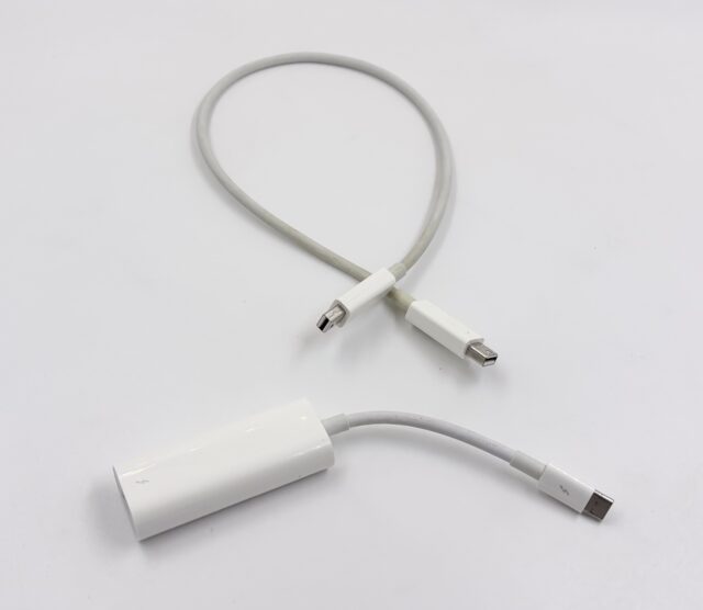 J’ai branché un adaptateur Thunderbolt 3 vers Thunderbolt 2 sur mon Mac mini M4 Pro (Thunderbolt 5) puis un câble Thunderbolt 1 vers un MacBook Air de 2012 sous macOS Mojave. C’est un modèle qui n’est que Thunderbolt 1 (10 Gb/s). Et la liaison a parfaitement fonctionné entre les deux Mac. Dès le branchement, la liaison réseau s’est activée avec des adresses IP autoassignées.