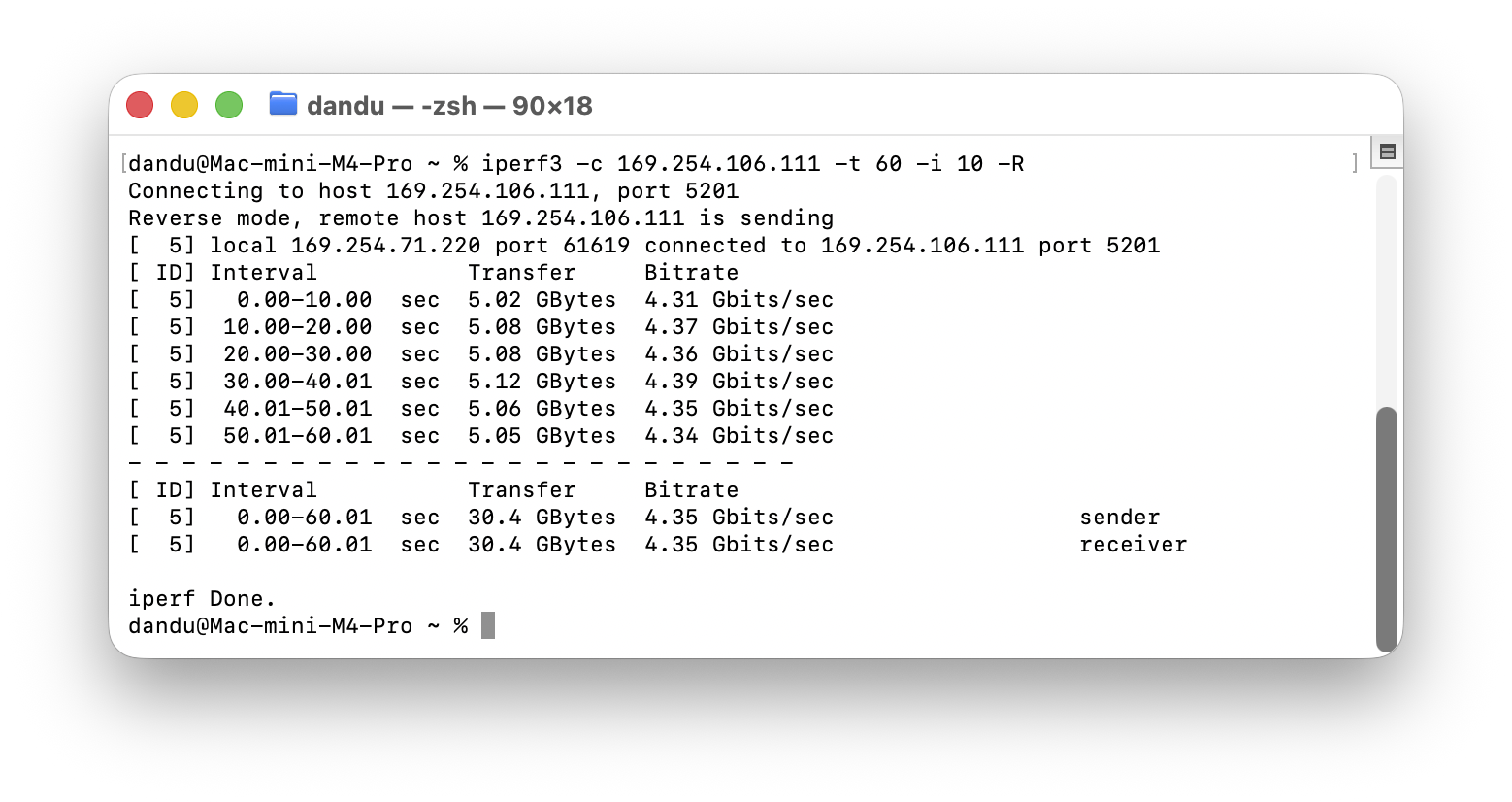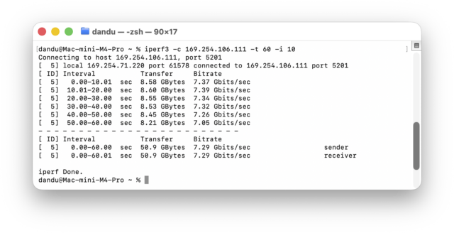 Quand j’ai parlé du Thunderbolt 5 et de l’IP over Thunderbolt qui permet pas loin de 70 Gb/s entre deux Mac, j’ai eu une question : est-ce que ça fonctionne avec d’autres générations ? La réponse est oui, mais j’ai fait un petit essai.